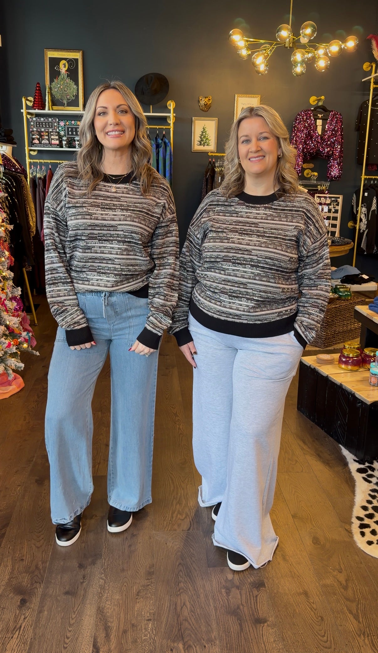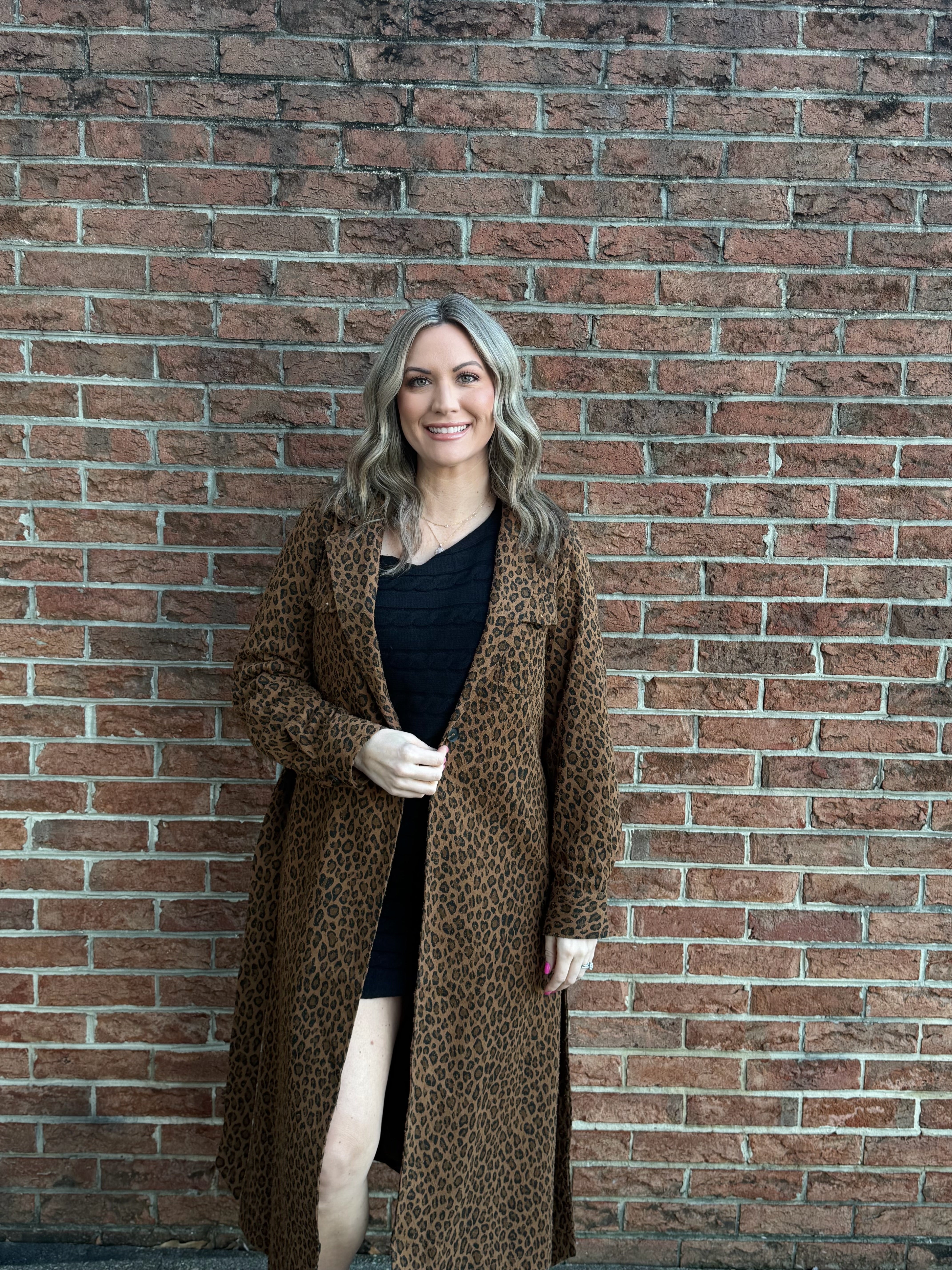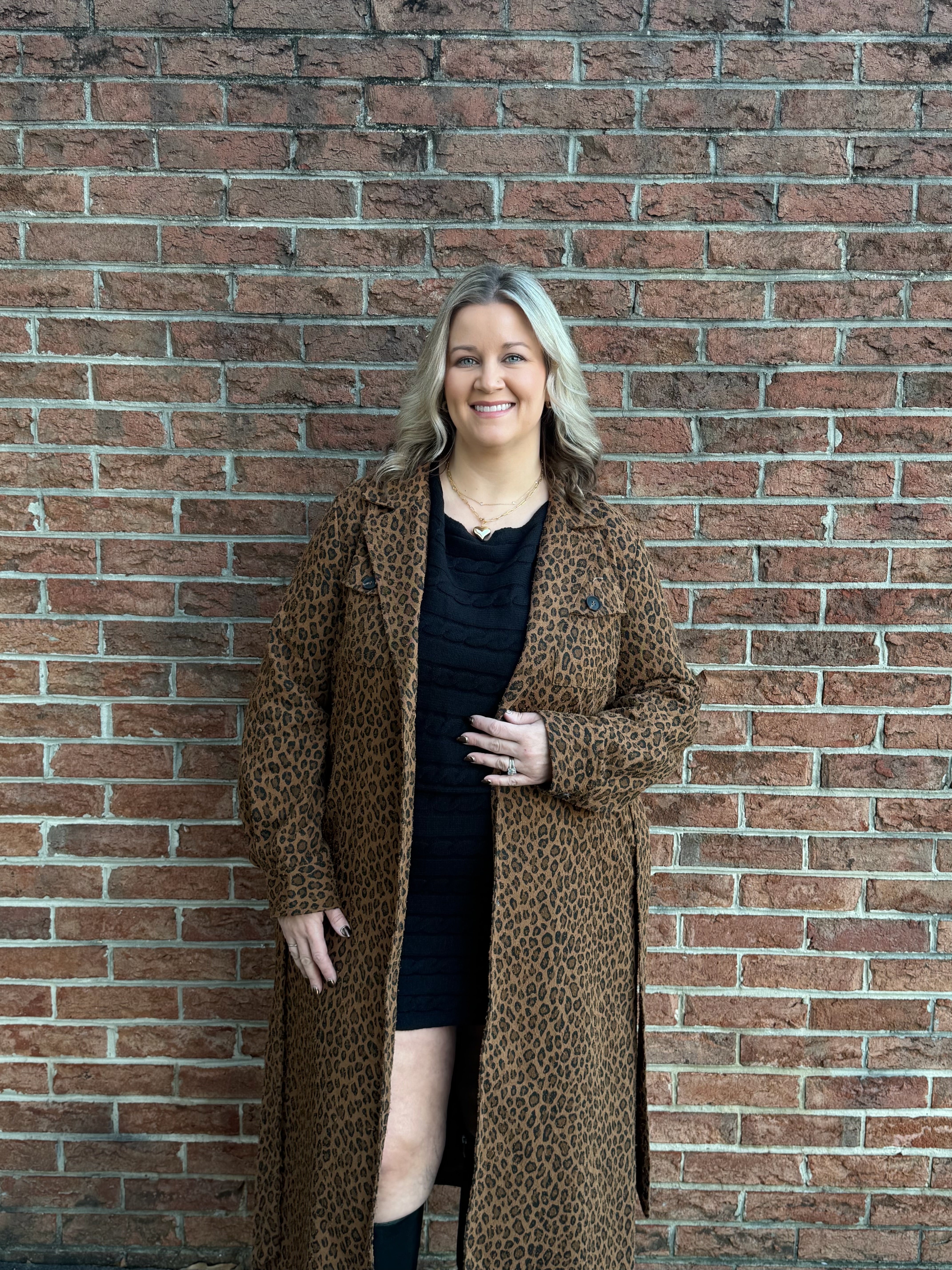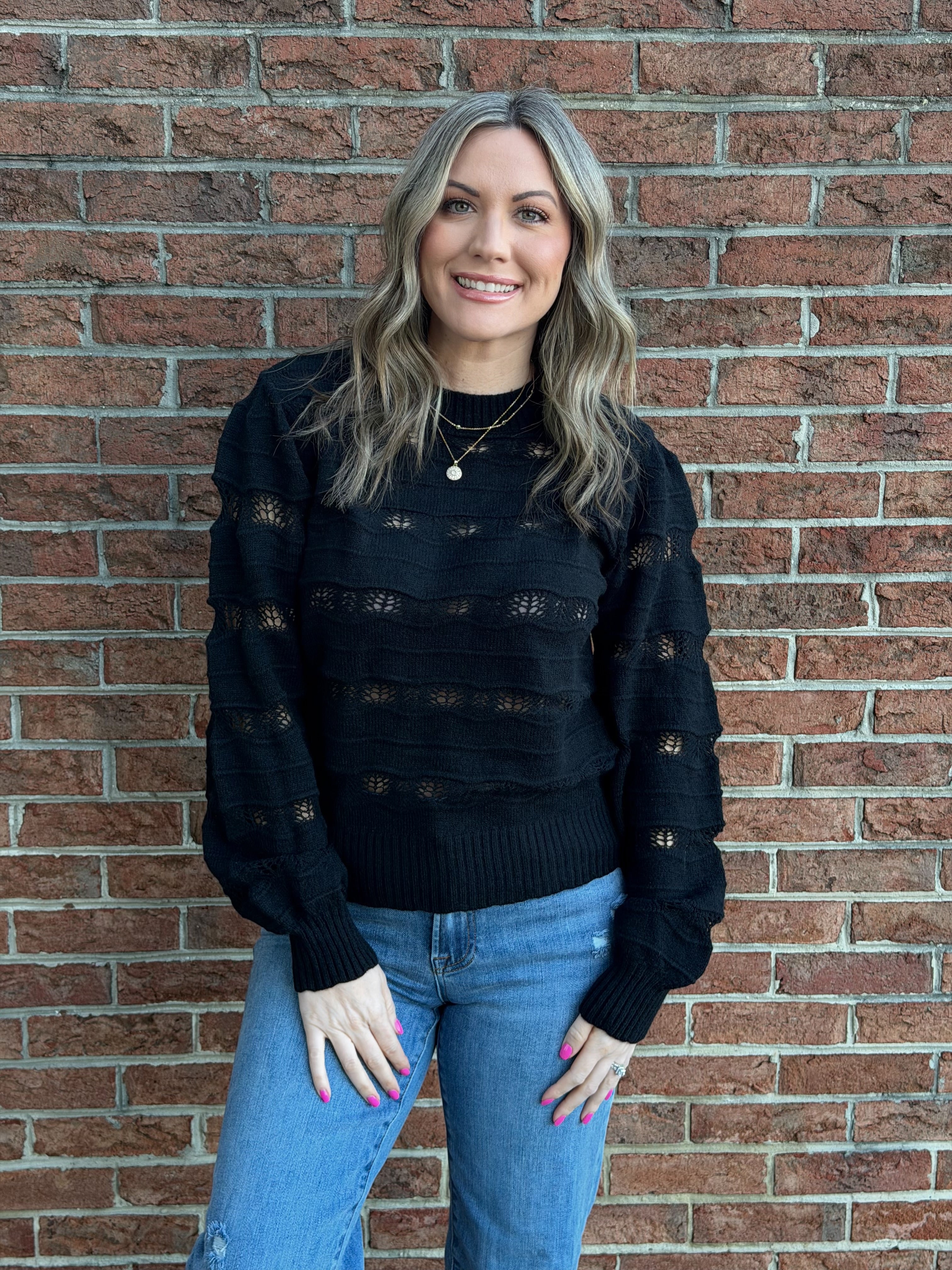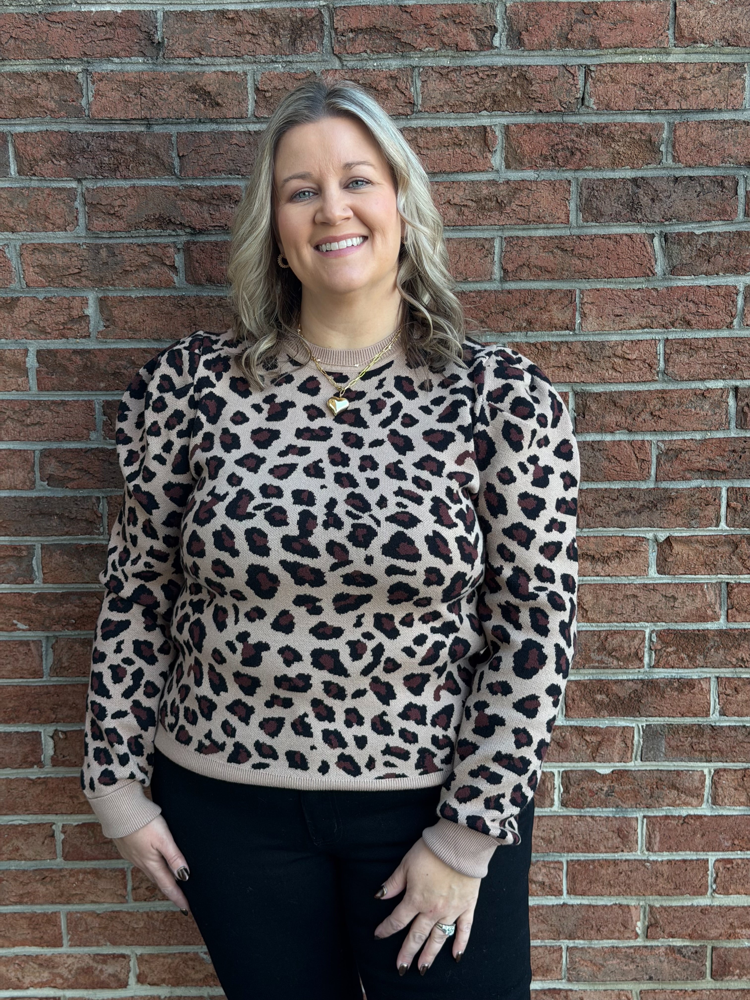 Crew Neck Puff Sleeve Leopard Knitted Sweater