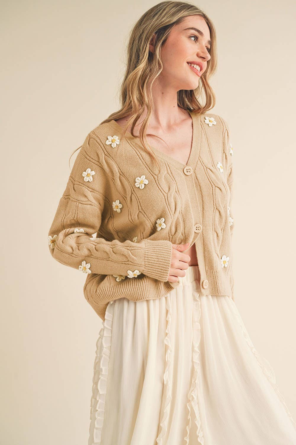 FLORAL EMBROIDERY KNIT SWEATER CARDIGAN
