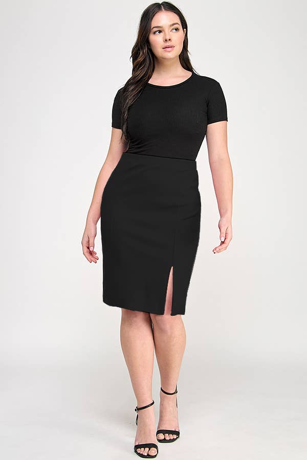 Plus Size Nylon Ponte Fitted Skirt JK18773-SK