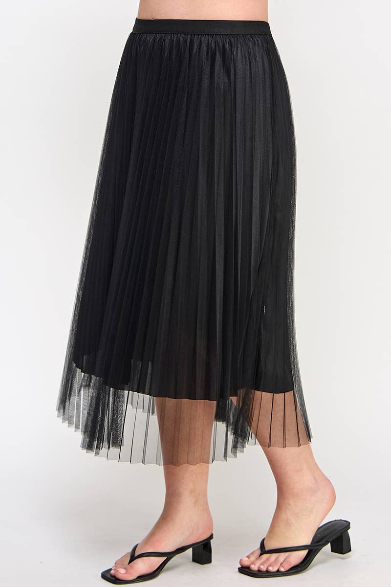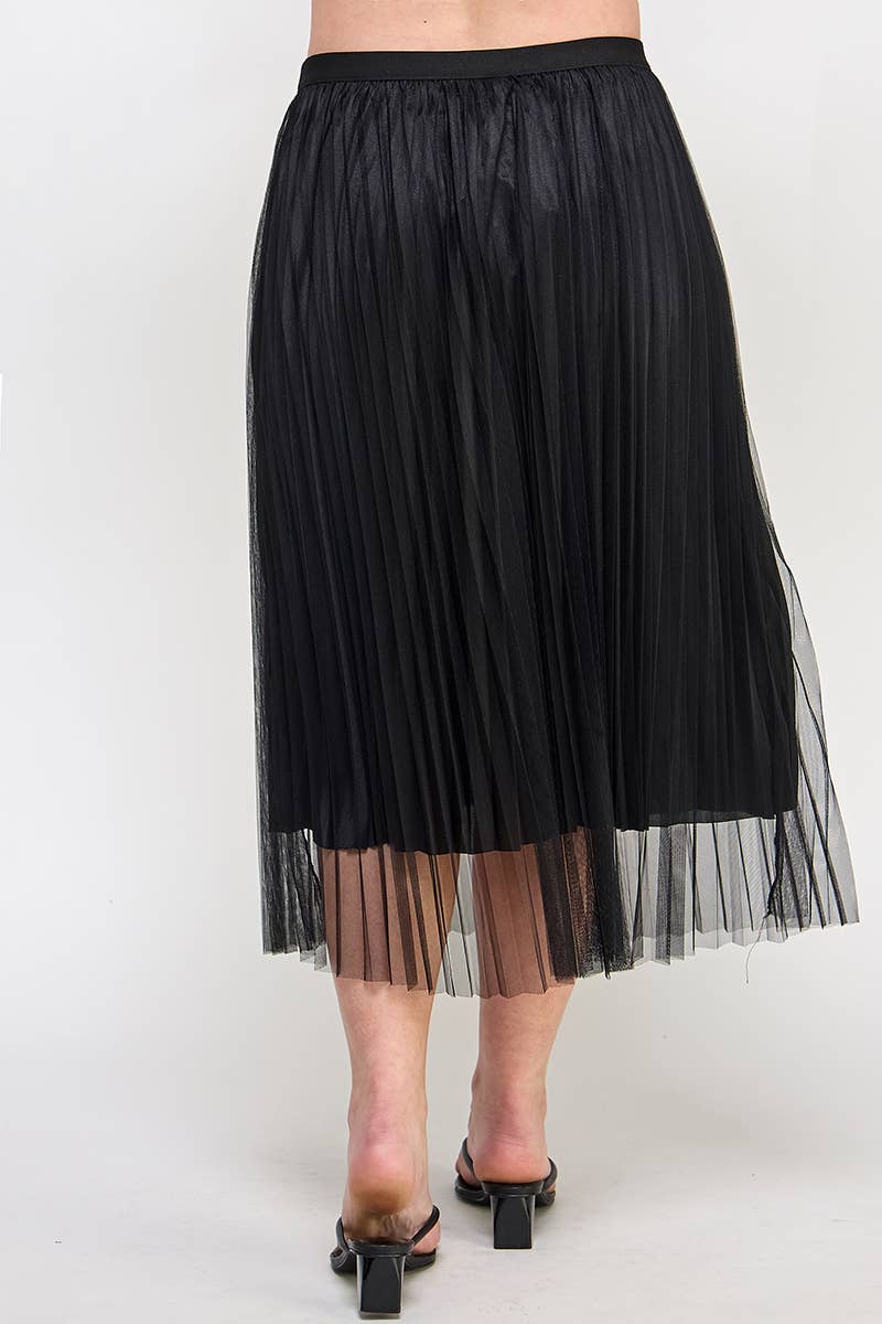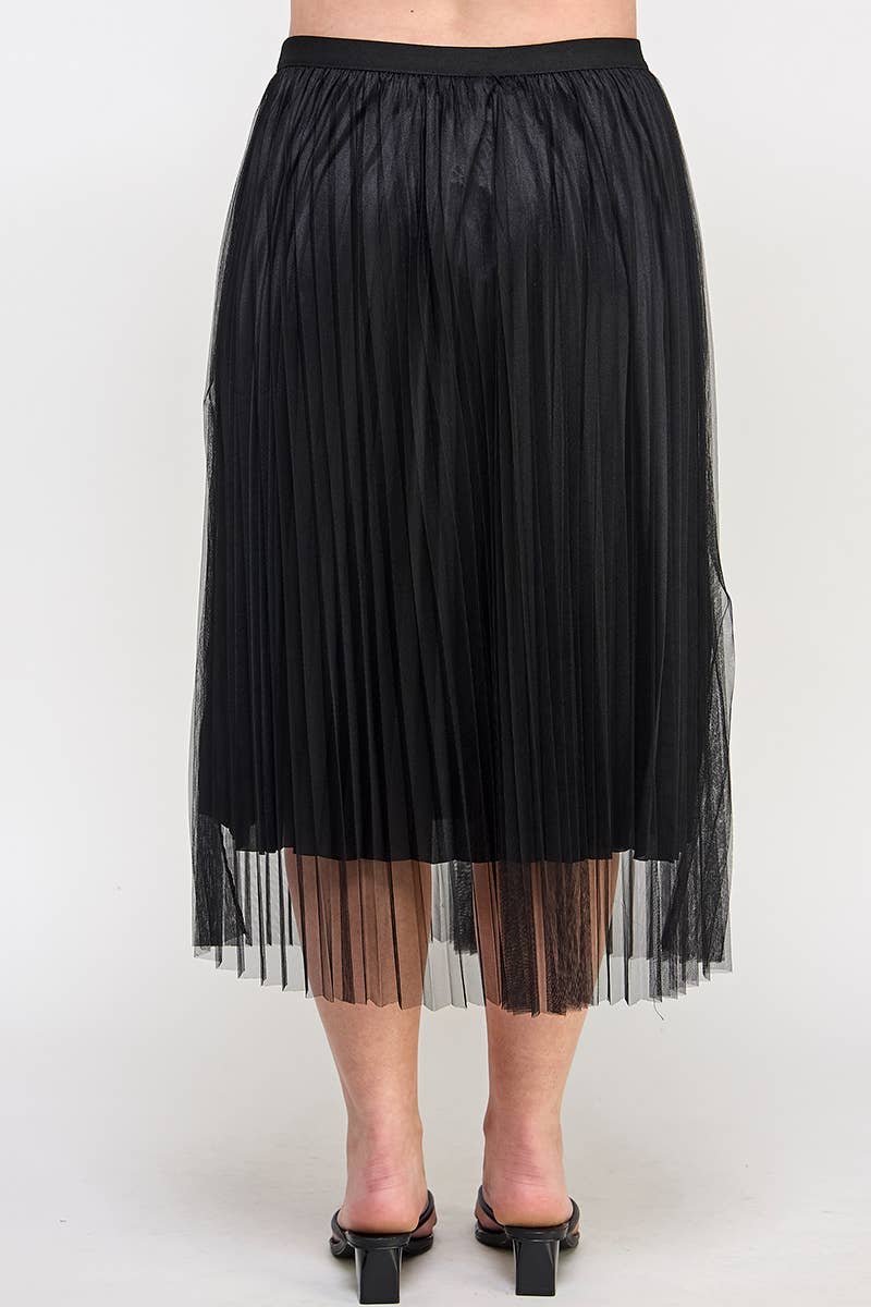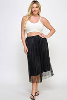 Tulle a-line midi skirt with matching knit satin lining. Stretch elastic waist with shirring by Haute Fox. • Plus Size Clothing • Plus Size Top • Available in 1X, 2X, 3X