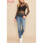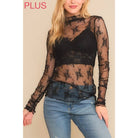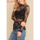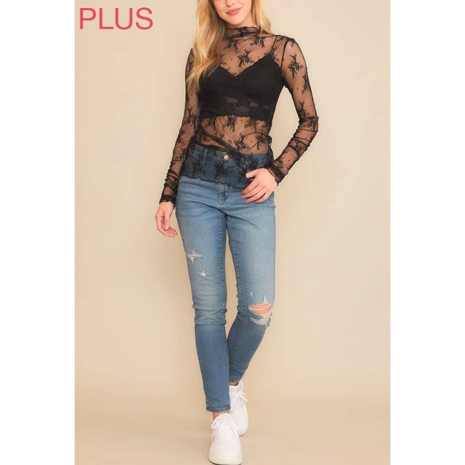 9602X-1 PLUS SIZE MESH LACE HIGH NECK LONG SLEEVE FITTED TOP
