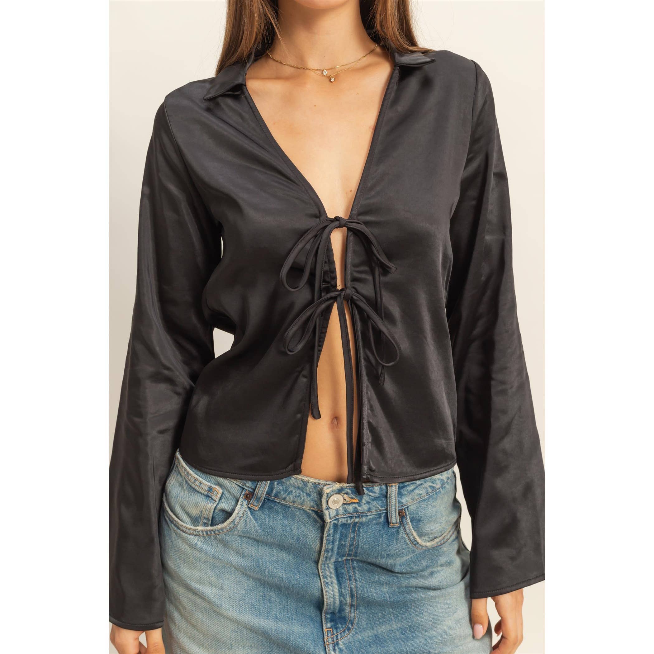 Chic Satin Tie-Front Blouse