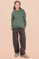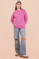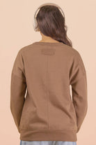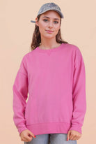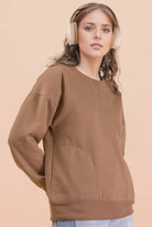 Oversized Casual Comfy Solid Knit Top - Side Pockets - Round Neck - Drop Shoulder - Long Sleeve (Model height: 5'9", wearing a Small, 2-2-2 Size Ratio, NEW IN)