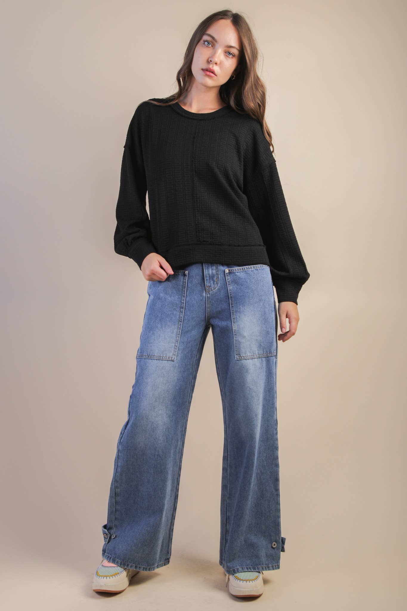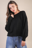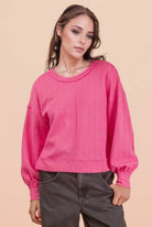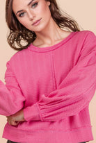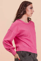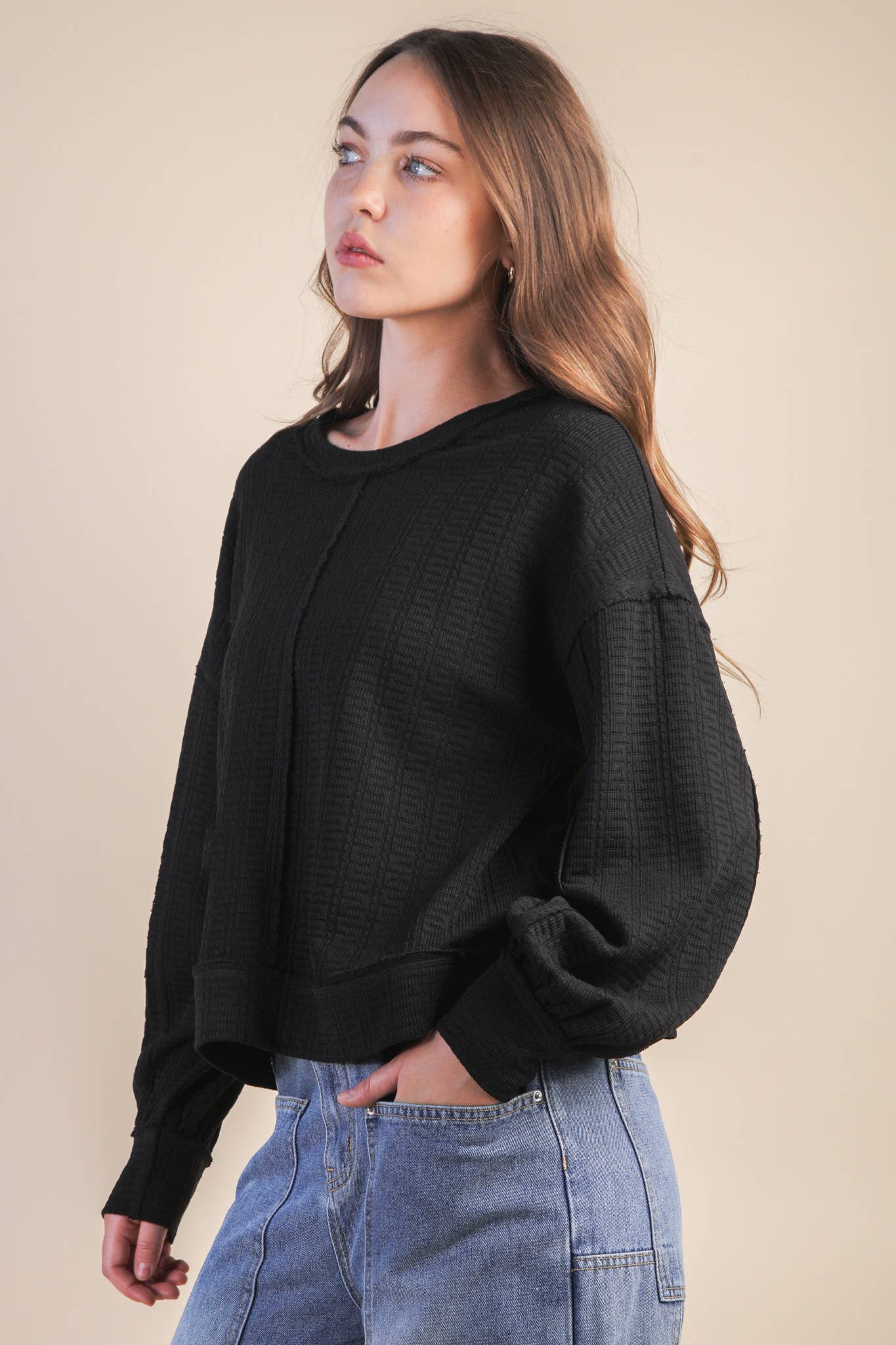 Raw Edge Detail Oversized Textured Knit Top - Back Square Neck - Dropped Shoulder - Side Slit - Long Sleeve - Easy, Knit, Comfy, Soft Knit Top - Cozy Essential - Soft Knit Top (Model height: 5"9", wearing a Small, 2-2-2 Size Ratio, NEW IN)