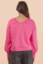 Raw Edge Detail Oversized Textured Knit Top