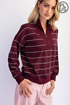PLUS SIZE MODAL SCUBA STRIPE V-NECK JACKET