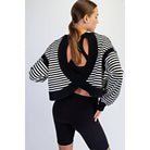 STRIPED OPEN BACK LONG SLEEVE TOP