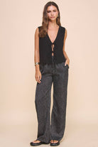 - Mid rise waist - Linen Blend - Side pockets - Elastic on waist - Model is wearing a size S