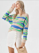 Multi Color Casual Knit Sweater Top - Multi Color Casual Knit Sweater Top - Long Sleeve - Drop Shoulder - Round Neck - Oversized - Ribbed Hem (Model height: 5'9", wearing a Small