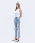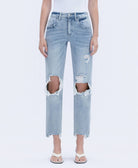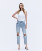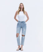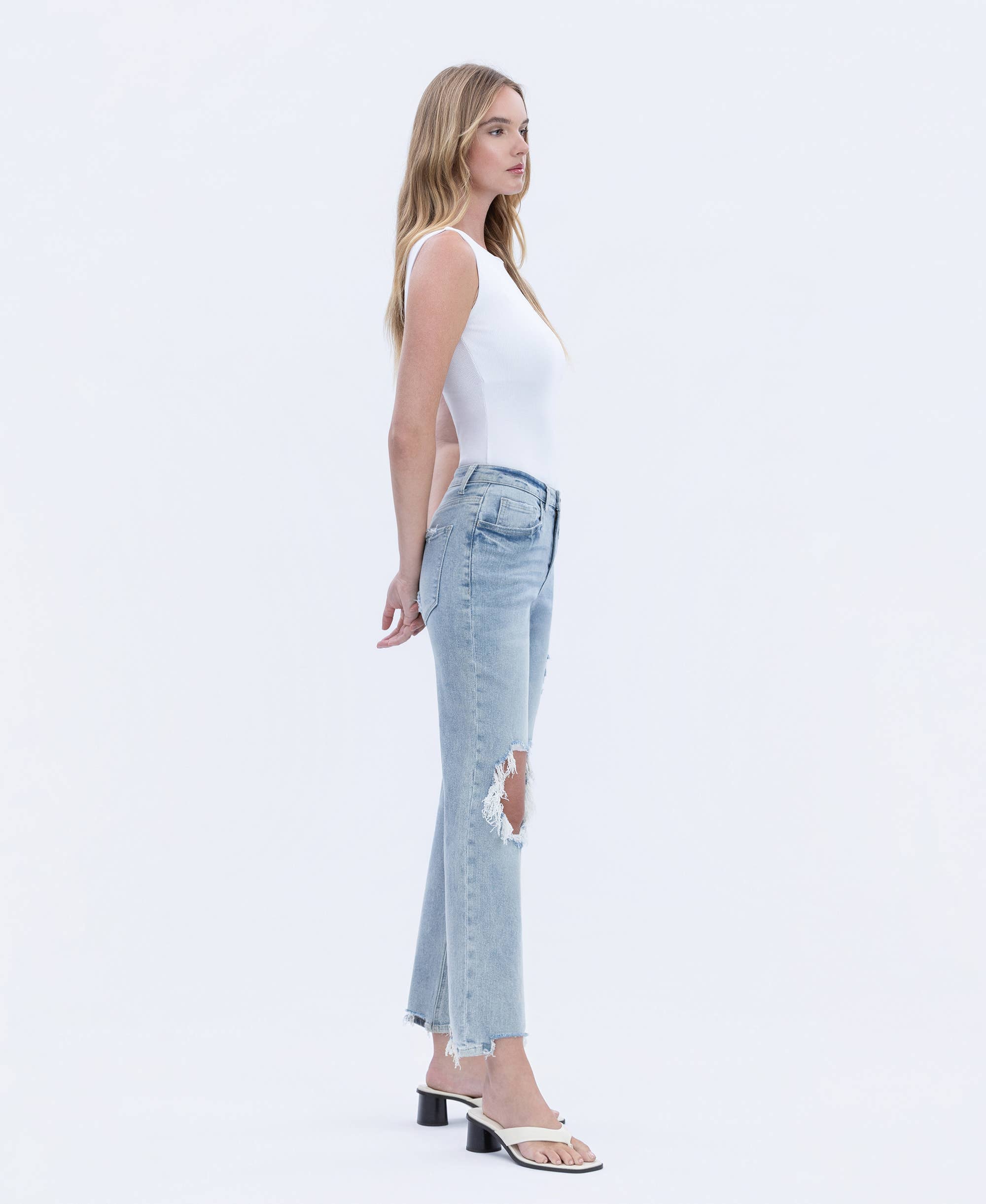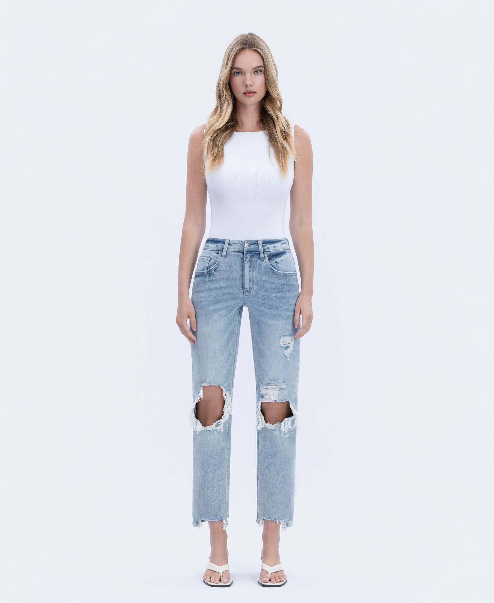 COMFORT STRETCH DENIM, SUPER HIGH RISE WAIST, DISTRESSED DETAIL, ANKLE LENGTH, 90'S DAD JEANS