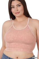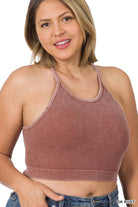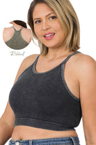 PLUS SIZE WASHED RIBBED SEAMLESS CROPPED CAMI TOP