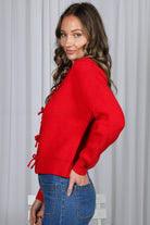 Bow Snap Button Detail Long Sleeve Cardigan Sweater