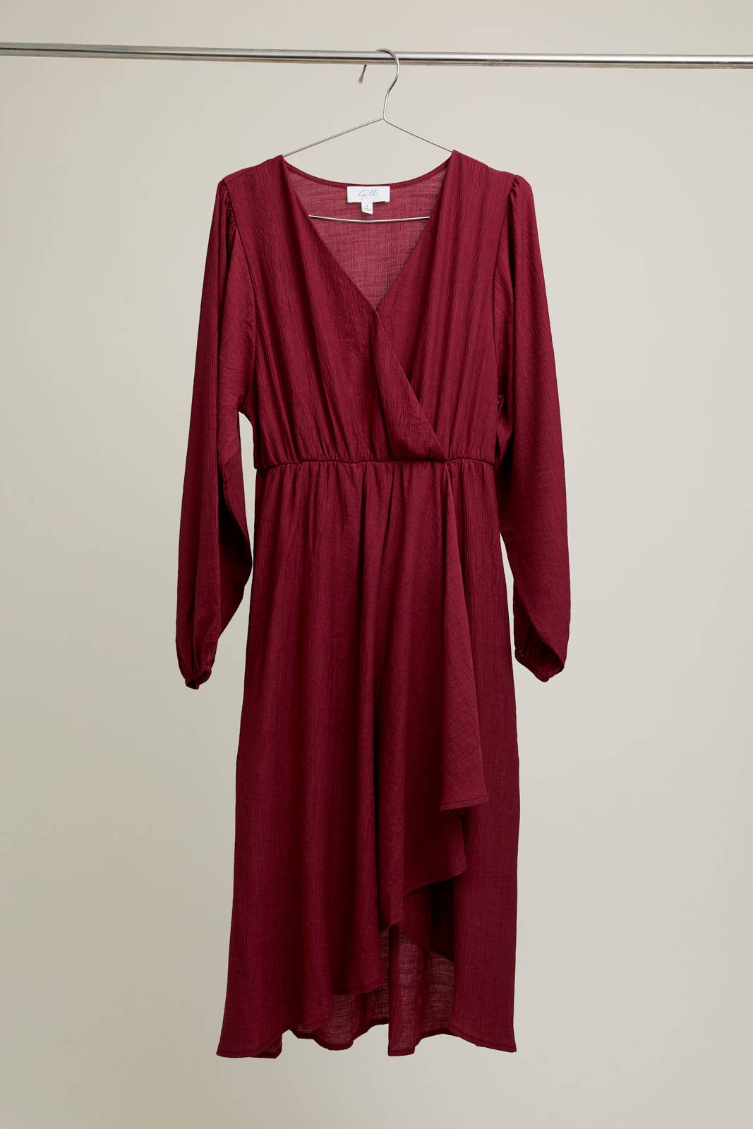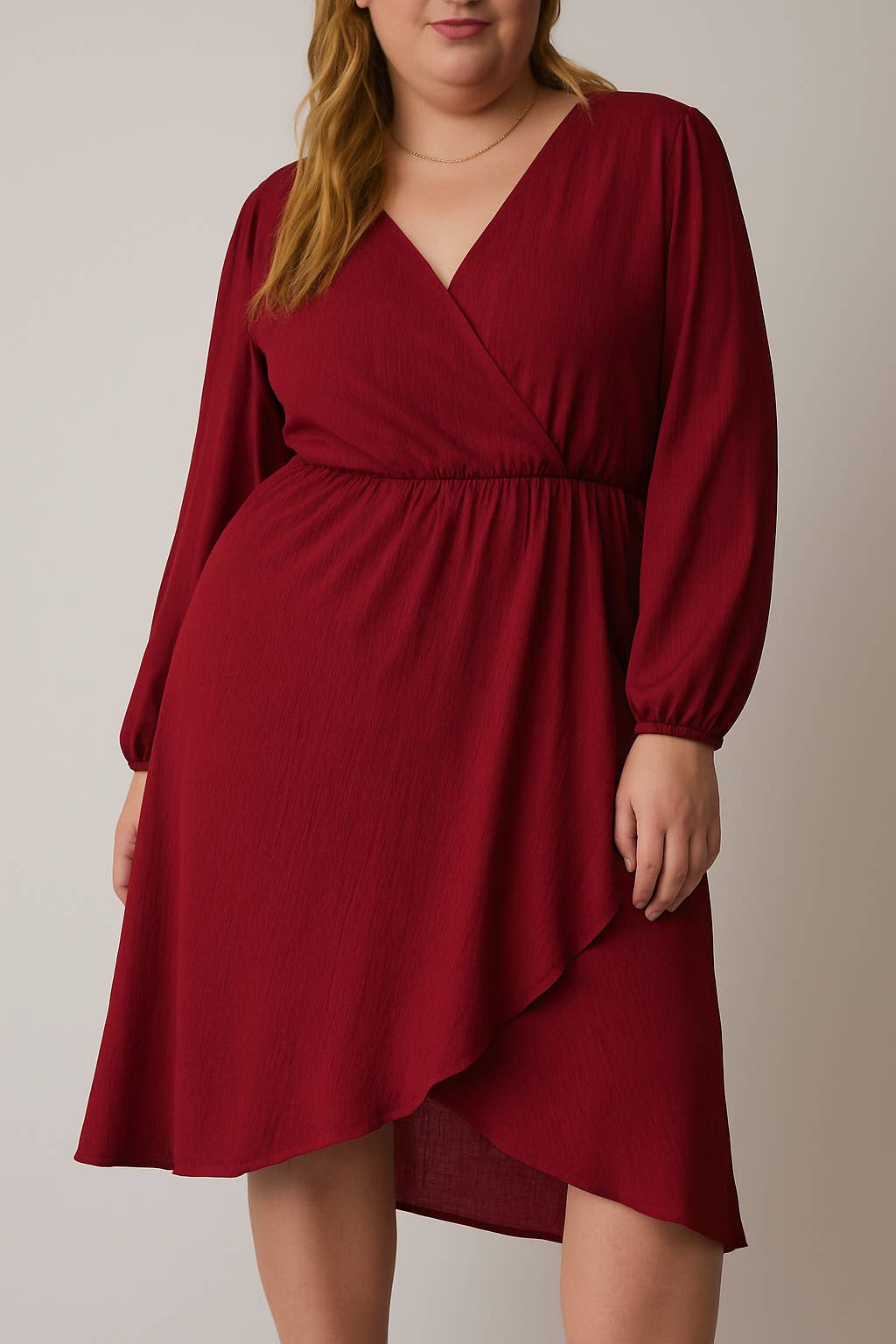 **PLUS** SURPLICE LONG SLEEVE FLARE HEM MIDI DRESS