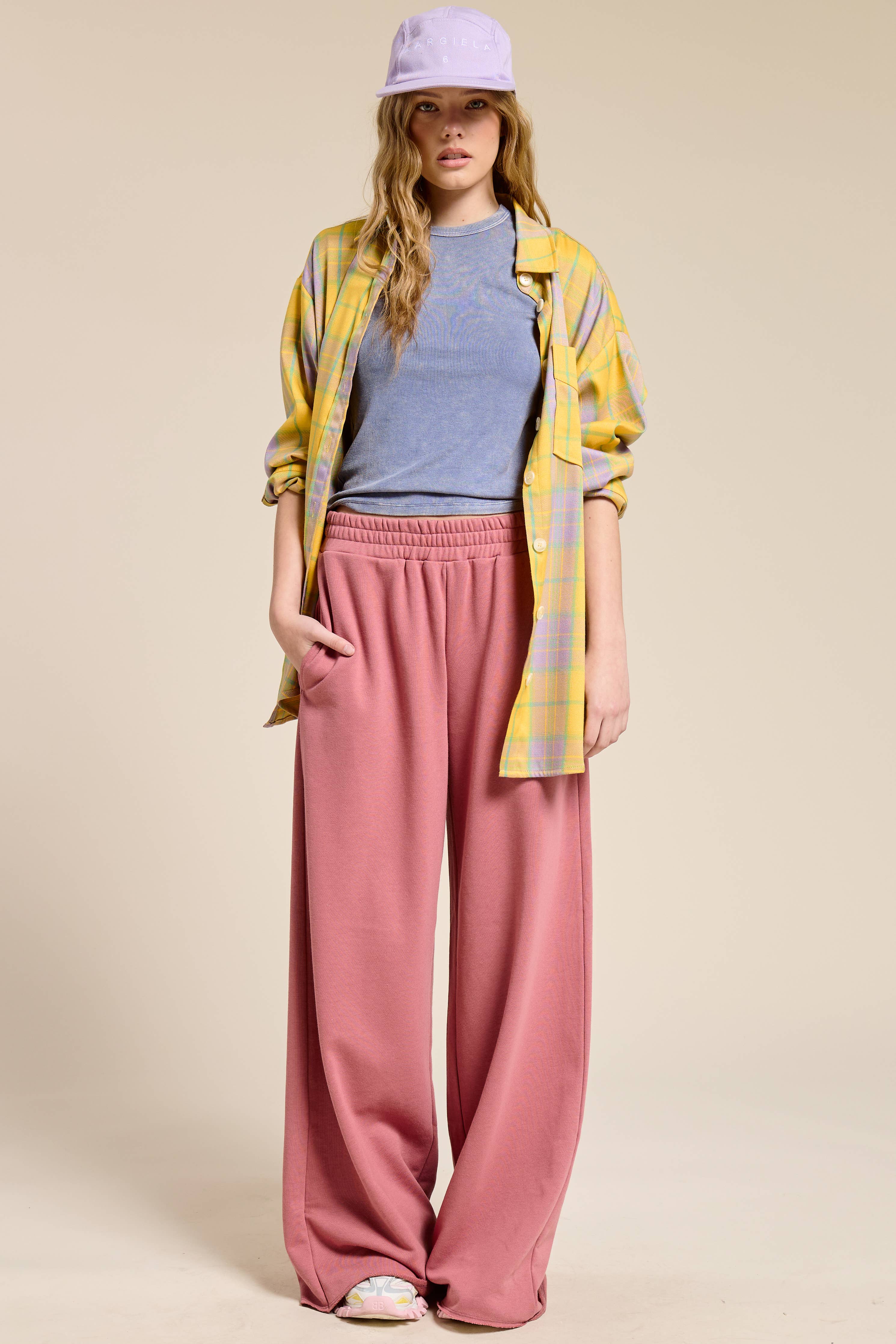 Made from breathable 100% cotton, these high-waisted sweatpants feature a raw edge hem, wide-leg silhouette, and elastic waistband for the perfect relaxed fit. Tailor the hem to your ideal length and pair with anything from cropped tanks to oversized crews for a casually cool look. MB5003 Size Small Measurements Length: 42.5" Waist: 26.5" Hip: 41" Inseam: 32" Size Medium Measurements Length: 43" Waist: 28.5" Hip: 43" Inseam: 32.25" Size Large Measurements Length: 43.5" Waist: 30.5" Hip: 45" Inseam: 32.5" cotton lounge pants, wide leg joggers, high waisted sweatpants, relaxed fit loungewear, everyday joggers, cozy basics, cotton basics, comfy weekend pants, everyday essential